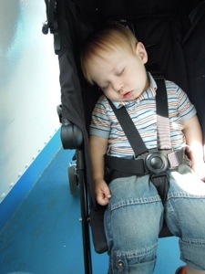 I bought train tickets while my Bambino peacefully slumbered. Then we got on the train.