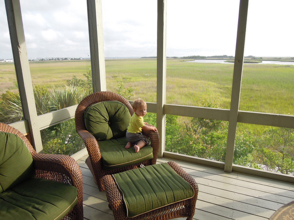 Our condo isn’t on the ocean. Instead, we’re on salt marsh. Our screened porch has one heck of a view. Bambino loves watching the ibises.