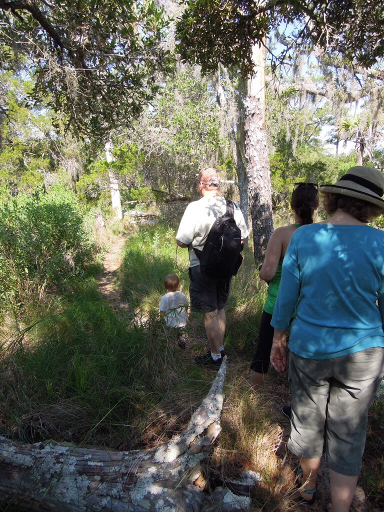 Today, we wrapped up Zia and Zio’s visit with a hike through the maritime forest and salt marsh trails. Bambino had to lead the way.