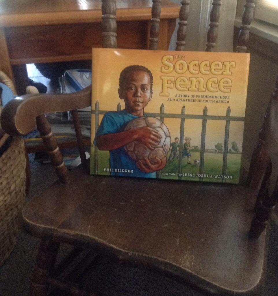 So, we will continue to kick goals, watch the occasional match, and sing futbol songs. I found a wonderful children’s book about South Africa, soccer, and the end of apartheid. It is one of Bambino’s new favorites.