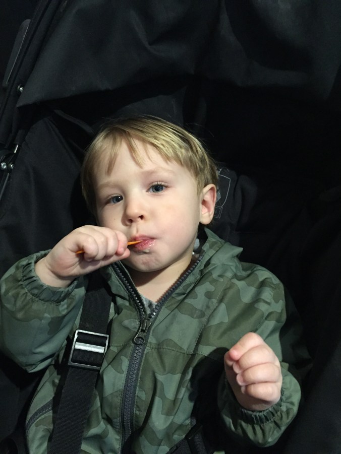 We were joined for a happy hour by an old friend of mine. Bambino chattered his ear off about elephants, “sauruses,” and “bluuuuues on the banjo!” It was a good day.