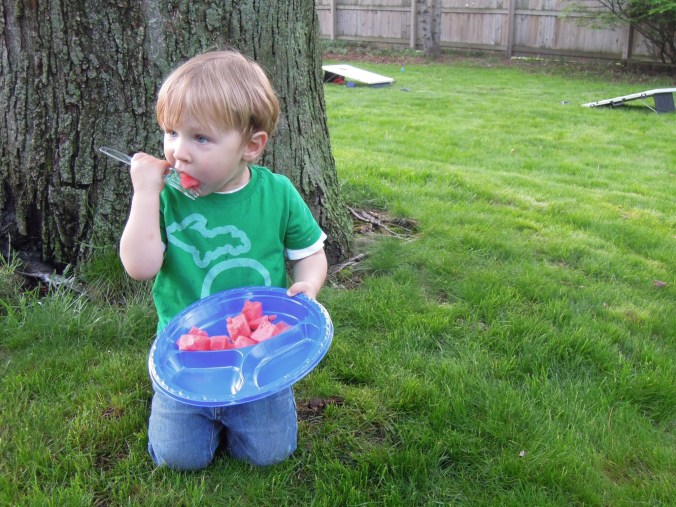 Sunday, we had the neighborhood over for a backyard picnic. We had a house and yard full of kids, laughter, and awesome food. I grew up in a rowdy neighborhood that held bike parades, barbecues, and included the loving and watchful eyes of a lot of great parents. I’m incredibly thankful that Bambino is getting the same kind of childhood.