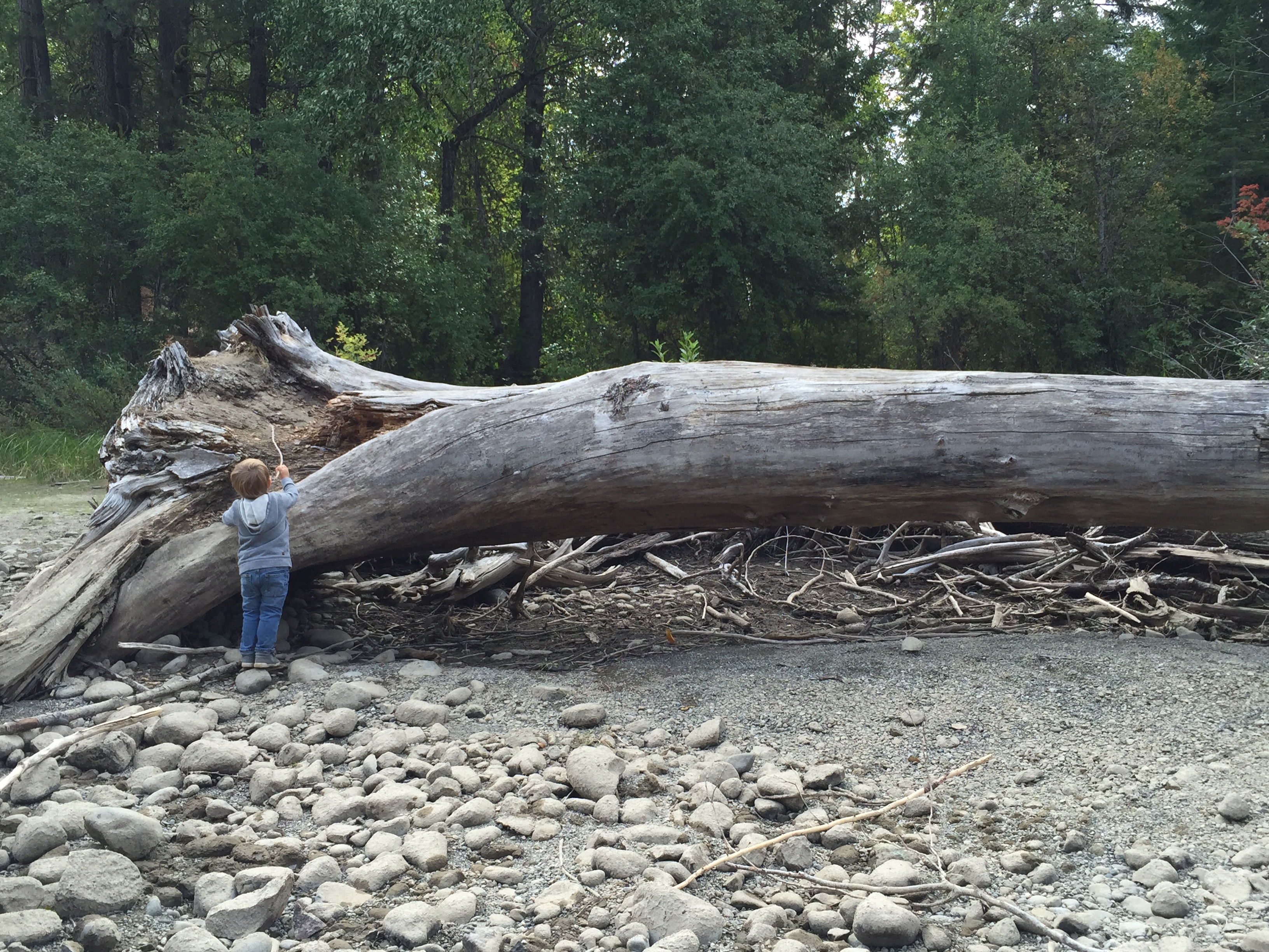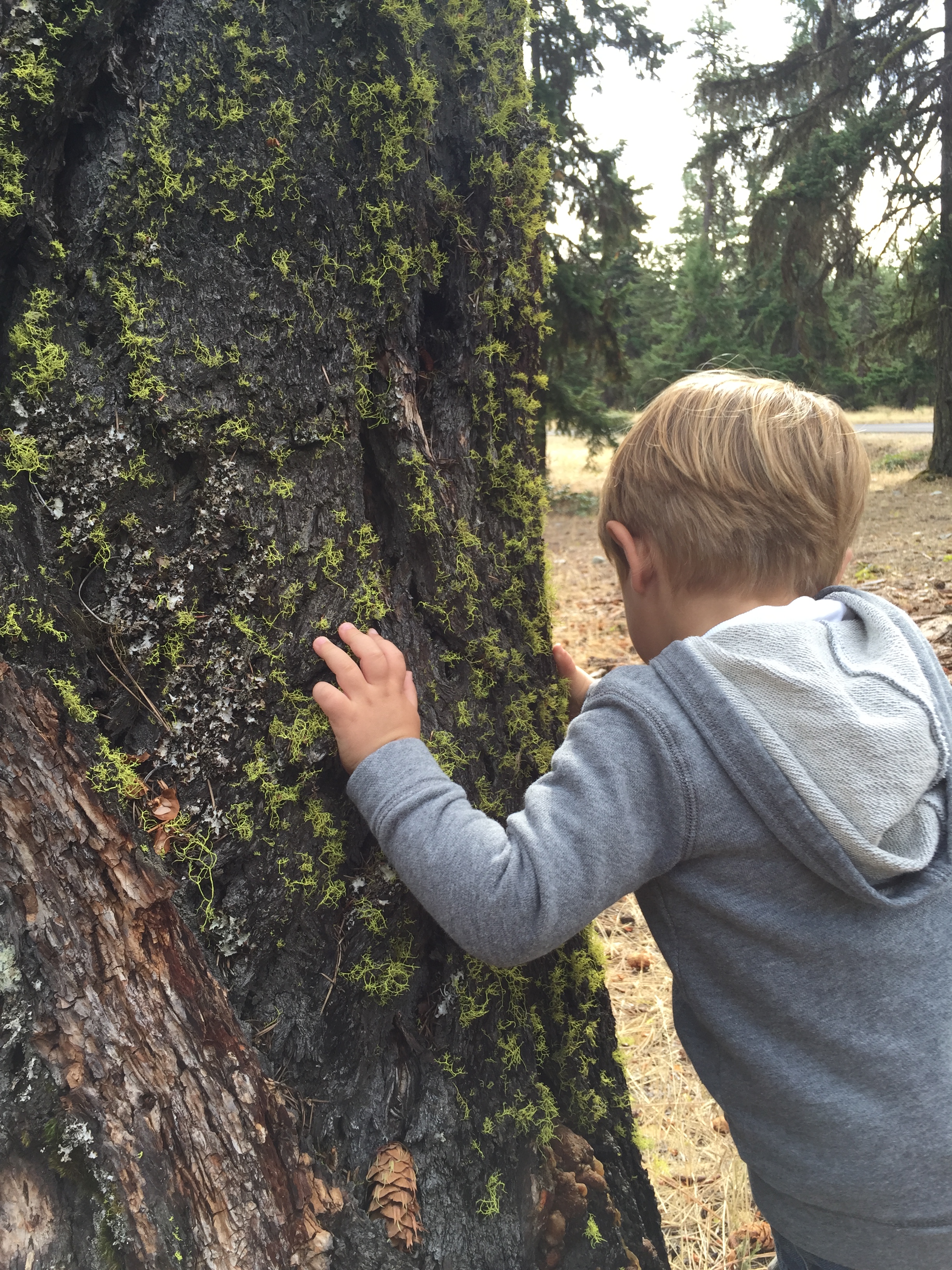 We hiked through the towering trees, examined lichen and logs, found sticks, and got good and dirty. We’re looking forward to exploring more of the trail system tomorrow.