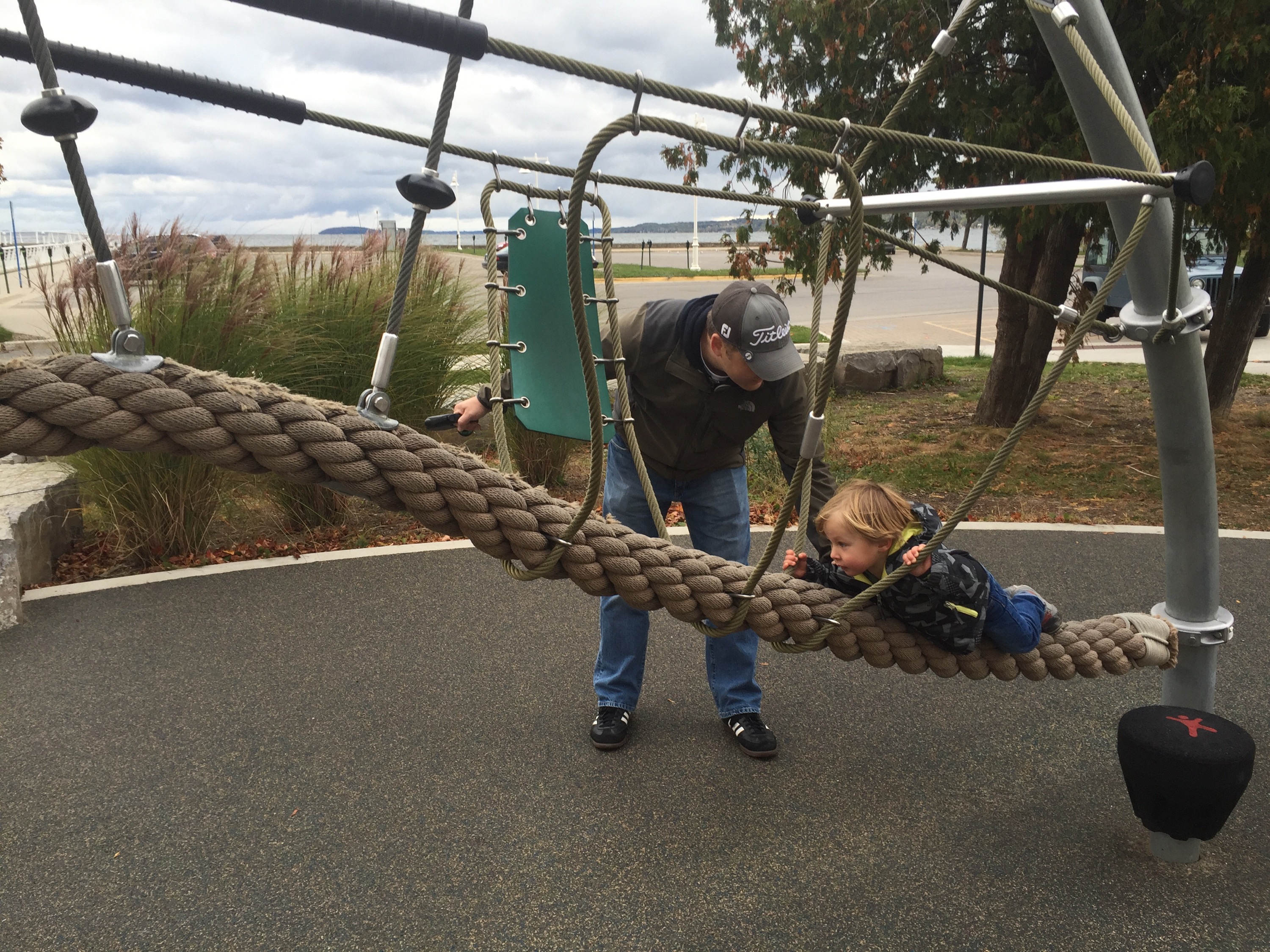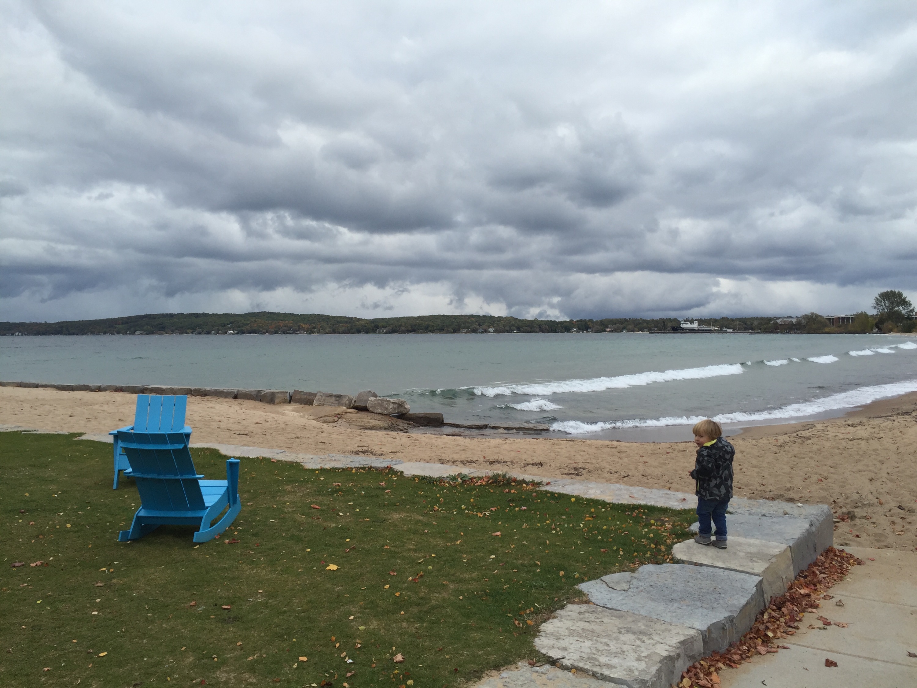 On our way home, we wandered, and hit up a few roadside parks and had lunch in Ludington. Bambino and il Cane dozed in the car, and the adults enjoyed the changing colors from the warmth of the car.