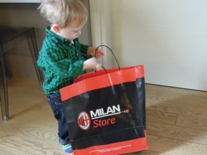 Bambino was quiet in the Duomo, and I think the scope of the place impressed him. He really liked the pigeons in the piazza. However, his highlight of Milan was the AC Milan store. The lovely staff adored my “bambino molto elegante” (he has a good stylist). They let him run around the store for roughly 20 minutes, kicking a ball, blowing kisses, and being hugged by attractive Milanese women, while yelling “Ball! Goal!”. Bambino may be an AC Milan fan for life. (Or, at least until the AS Roma match.)