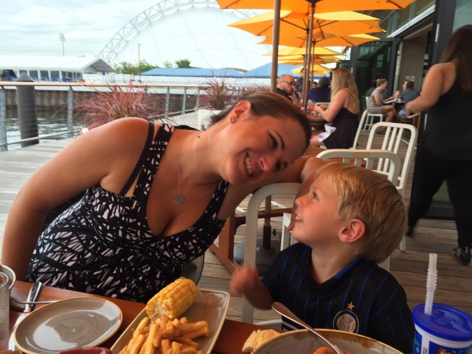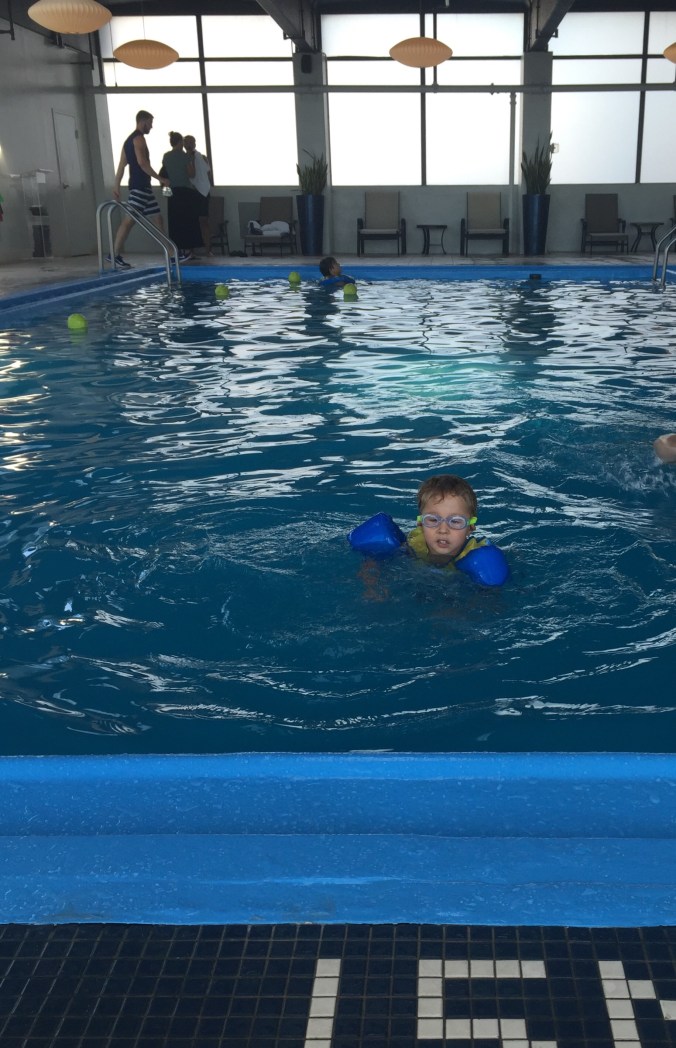 Our hotel (the highly-recommended Revere Boston Common) had a rooftop pool. On our first morning, we spent a lazy morning on the roofdeck and in the water. At first, he was afraid to leave the pool’s ladder. We (sometimes impatiently) reminded him that he had a lifevest on and we were by his side. Then, without further prompting, Bambino literally took a leap of faith. He spent the rest of the afternoon paddling around the pool.