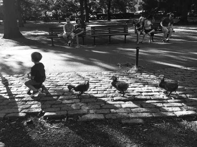 The first were at the Boston Common’s Frog Pond. A magnificently large wading pool, he splashed and romped with a pack of wild, happy children. It was beautiful watching him interact with kids of many ages and backgrounds. One little girl (who was probably ten years old) patiently played an extended game of “hide and seek” with our little one. (It’s hard to hide in a wading pool) When we headed out, she begged us to bring him back later.